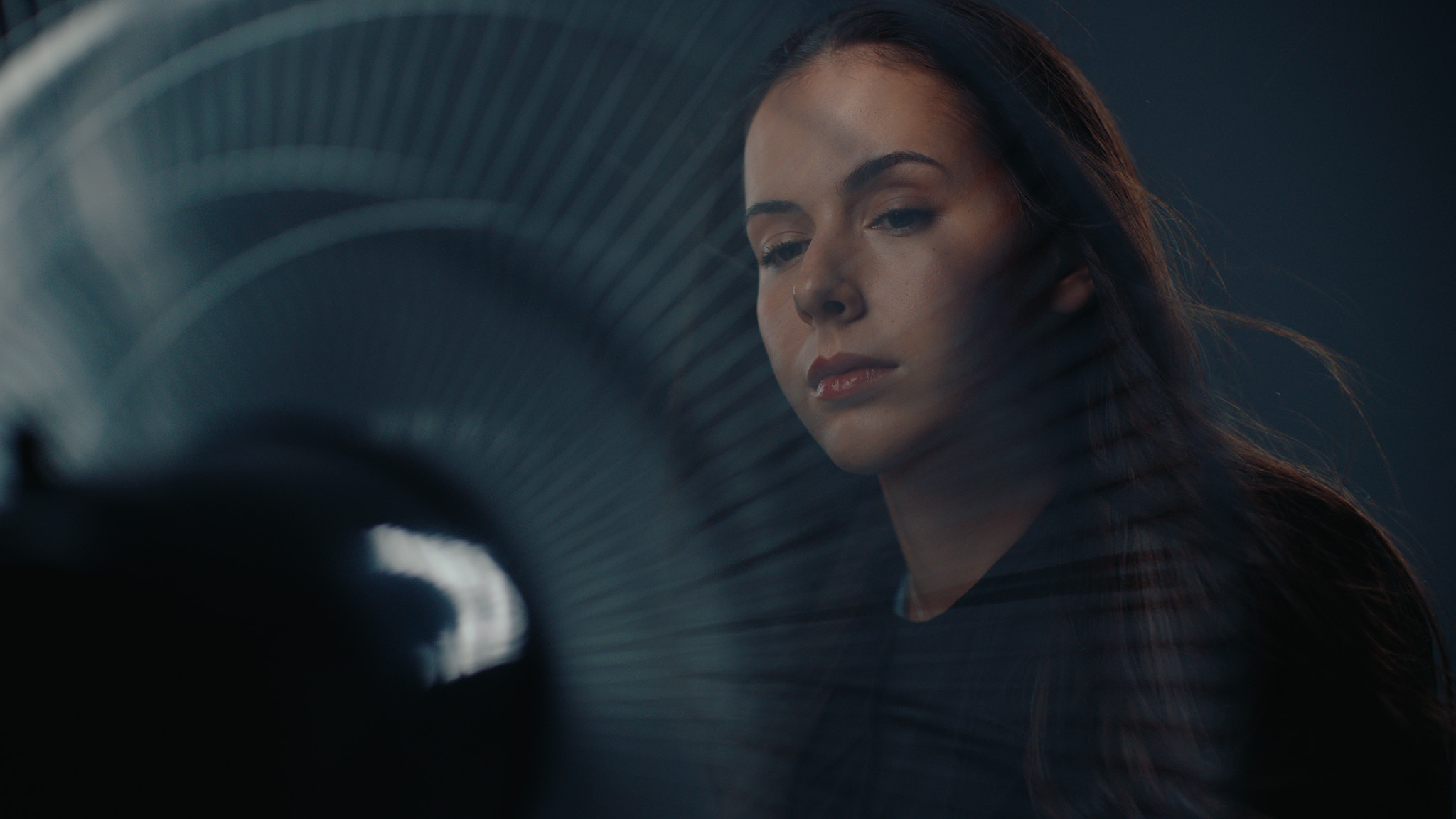 The video consists of close-up shots of people staring at a fan. They hardly move, while the fan spins and moves left and right, blowing their hair. The work seems staged, deliberately static. The concentration of consciousness is "scattered" by the fan. The video is slightly hypnotic, the kind of work that drives you crazy because nothing happens, but at the same time something is always changing. It expresses states of anxiety, fear, flirtation, laughter, or helplessness.