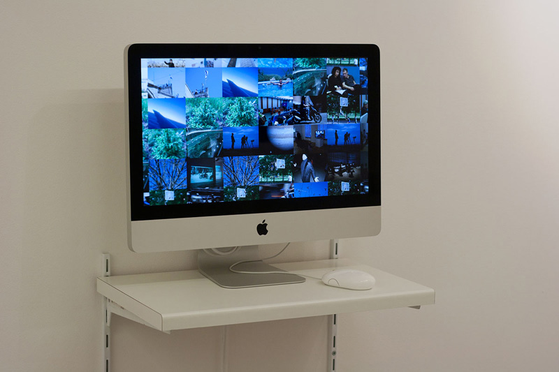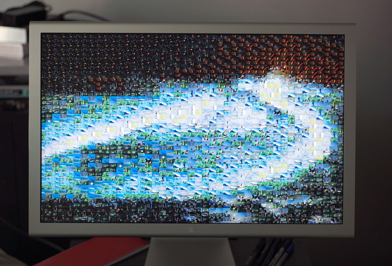 The display style is generating screen patterns in such a way that the images are building up the surface, the relief and the body of cosmic objects. The images are arranged in a certain way to look like enlarged pixels next to each other; depending on the colours and the light in each photograph a particular shape is forming on the screen. This shape remains well recognizable compared to its source. The result is something like a computer generated (CGI) compilation of memories, events, sights, people and all that is available in the photographic archive of the user. All of this happens totally randomly without any interference. It may happen that the photographs I have recently taken in Dubai, for instance, are giving shape to the North Pole; or that the visual documentation from my show in Bologna a year ago is being combined with photographs from the New Years' fun in the village of Mlechevo while forming some kind of a constellation; or photographs from the museum of Ducati become craters on the surface of the Moon while the Easter eggs and the tulips from my mother's garden become a meteorite.